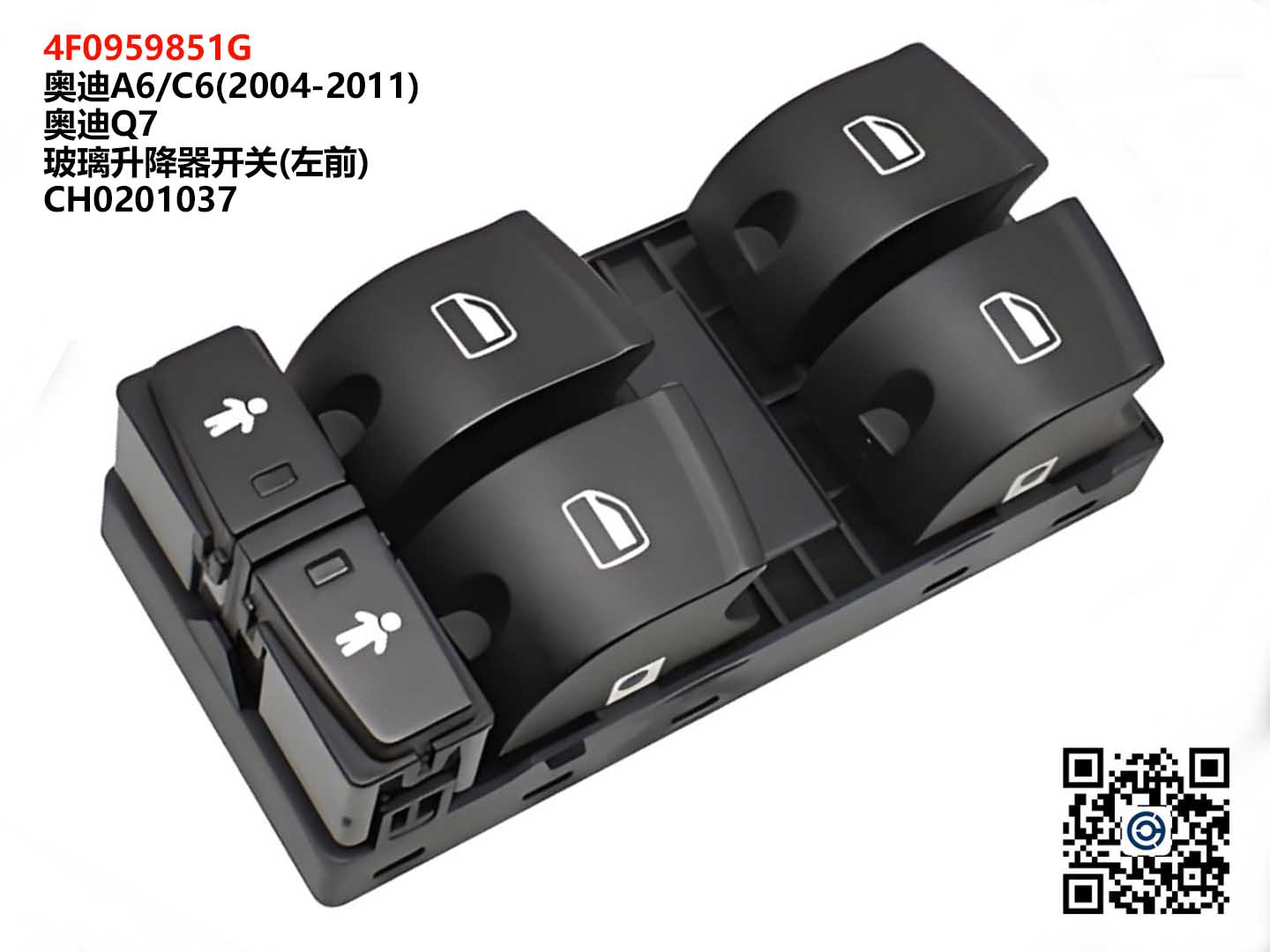 玻璃升降器開(kāi)關(guān)(左前) 原廠(chǎng)代碼:4F0959851G