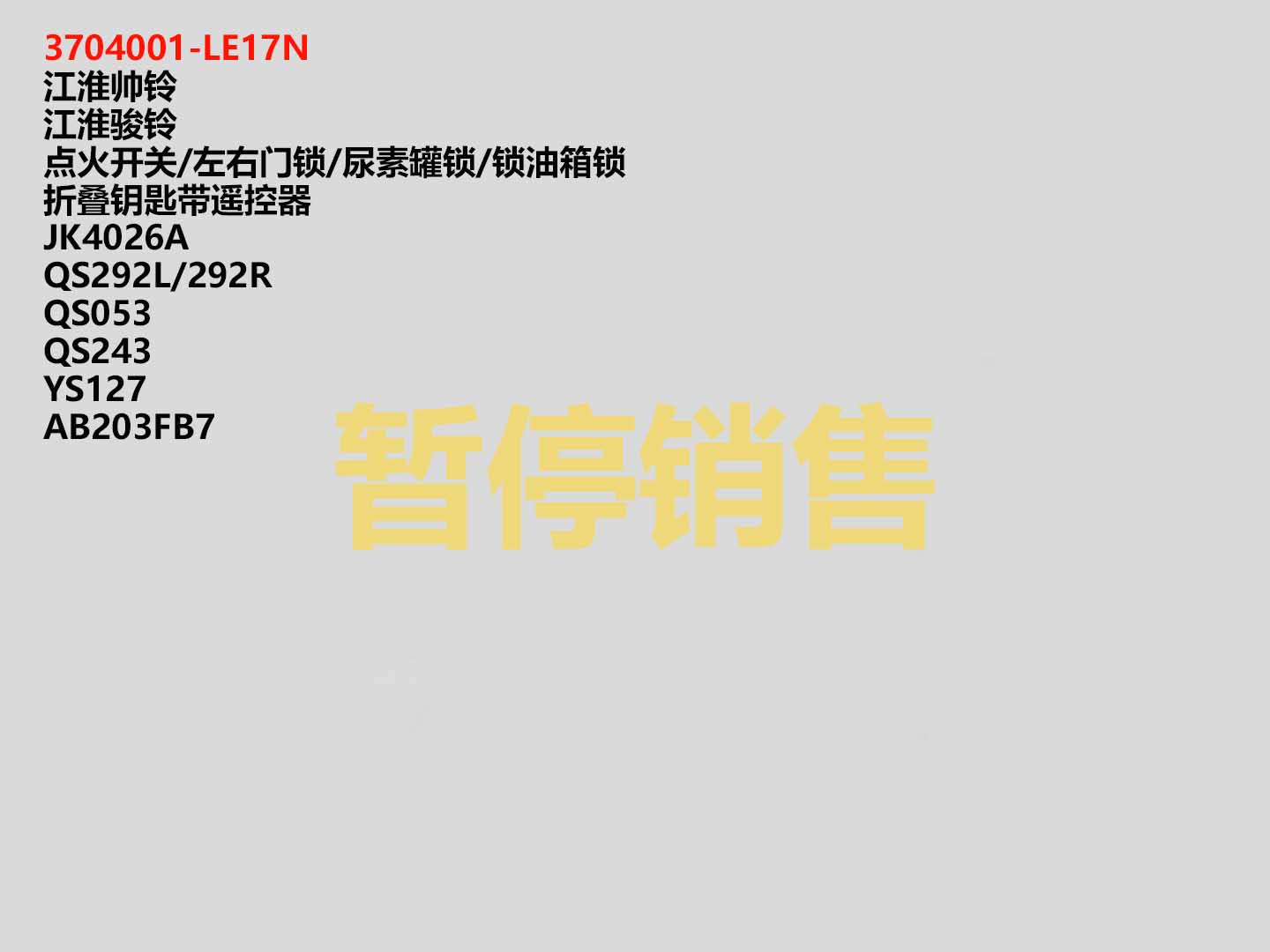 點(diǎn)火開(kāi)關(guān)/左右門(mén)鎖/尿素罐鎖/油箱鎖 原廠(chǎng)代碼:3704001-LE17F